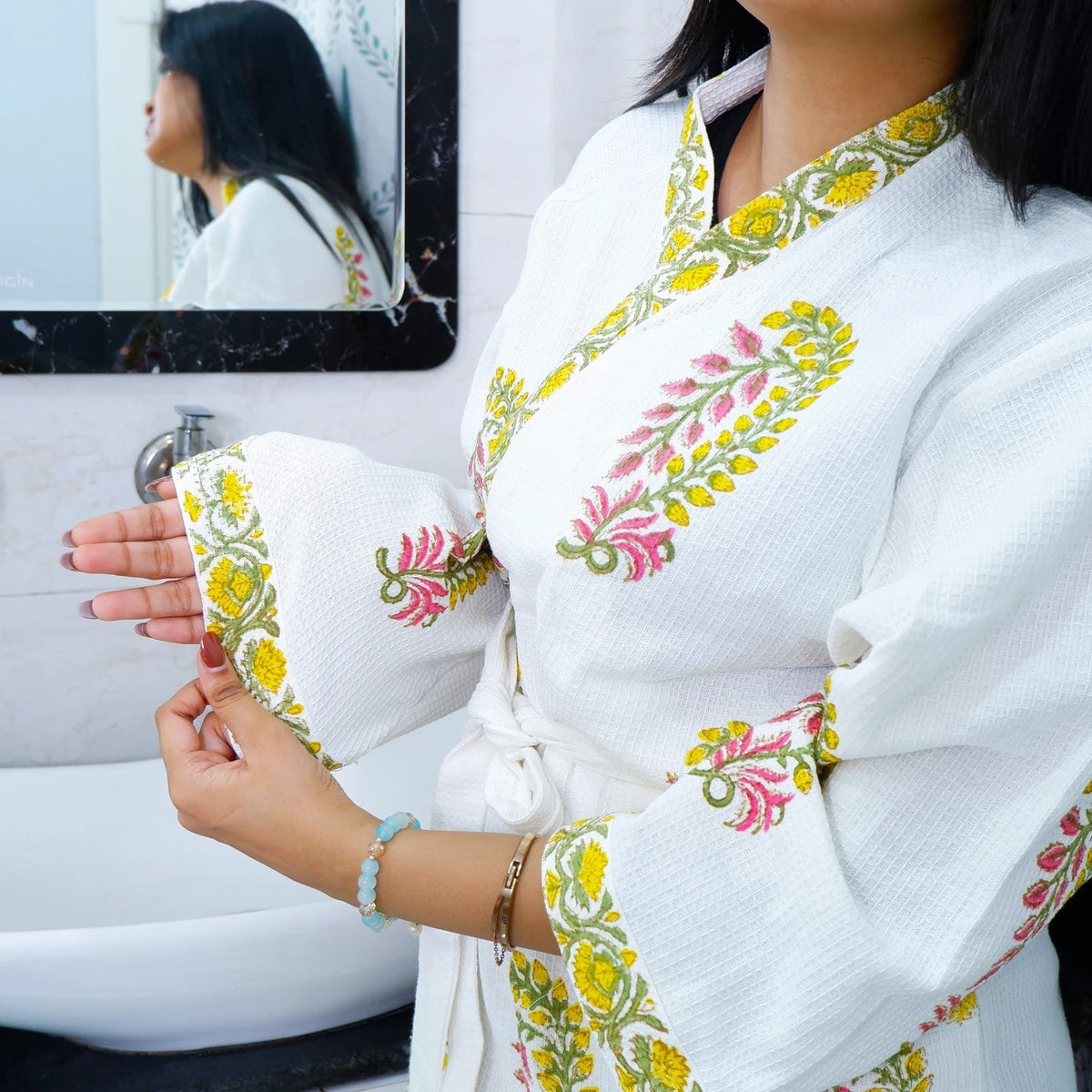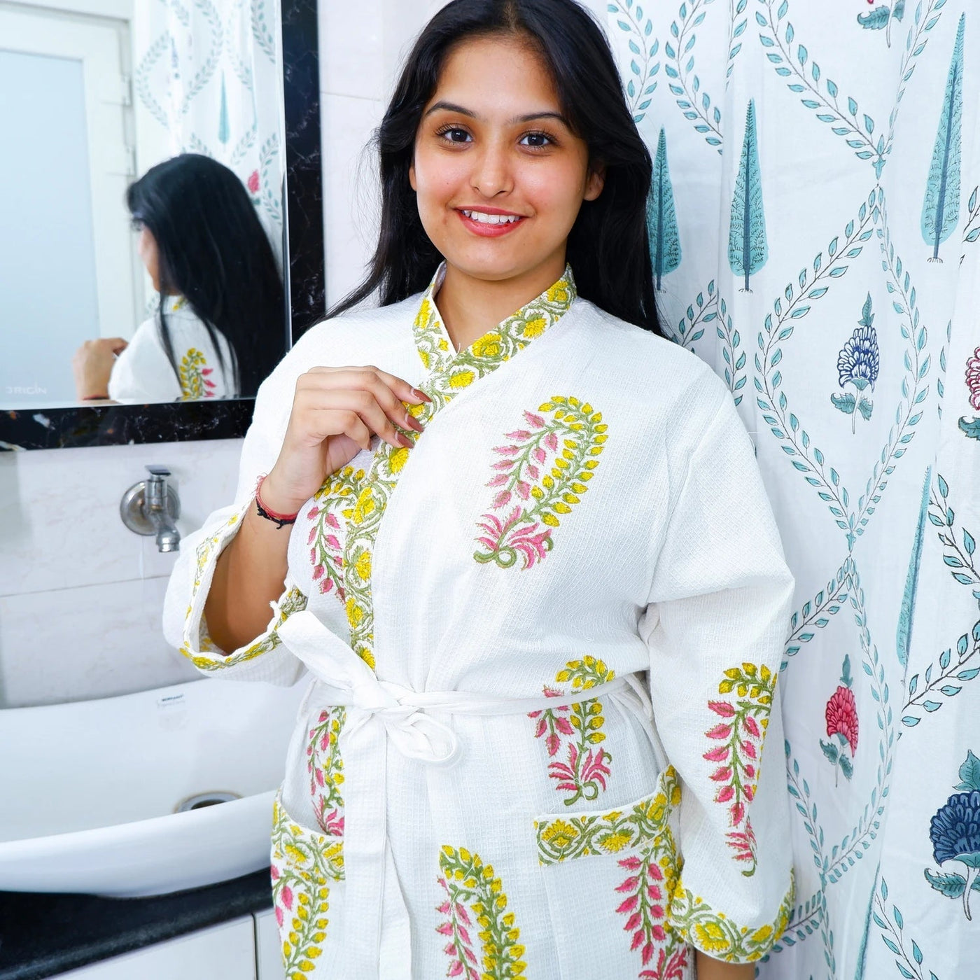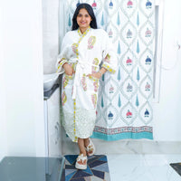 Women's Hand Block Printed Cotton Bathrobe - Phulwari (Free Size)