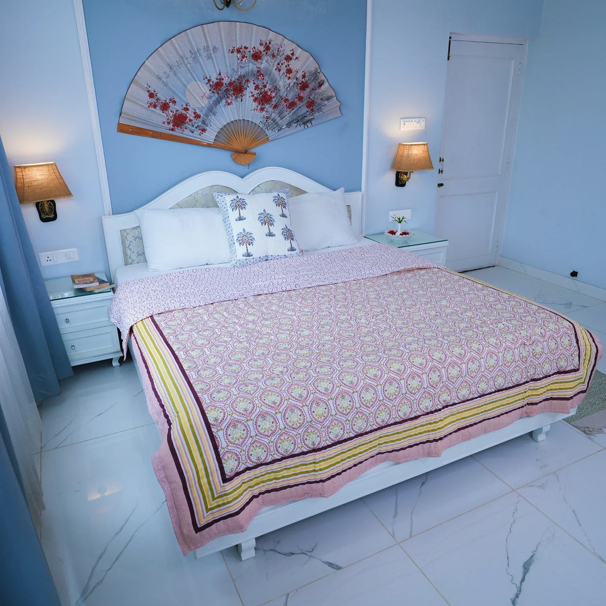 A. Absolutely! Mulmul cotton’s lightweight nature makes these quilts versatile. They provide warmth in winter and remain breathable during summer, making them ideal for year-round use.