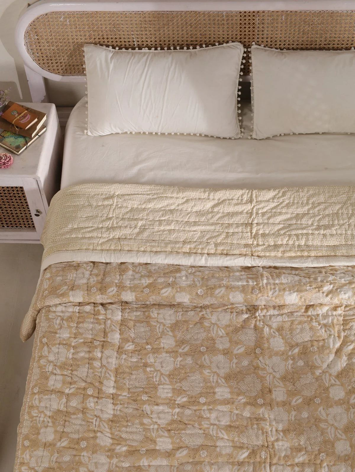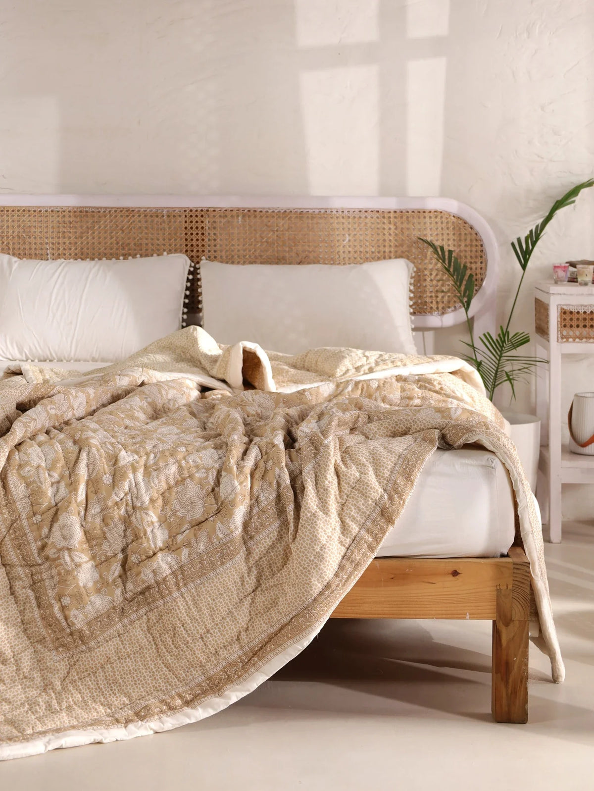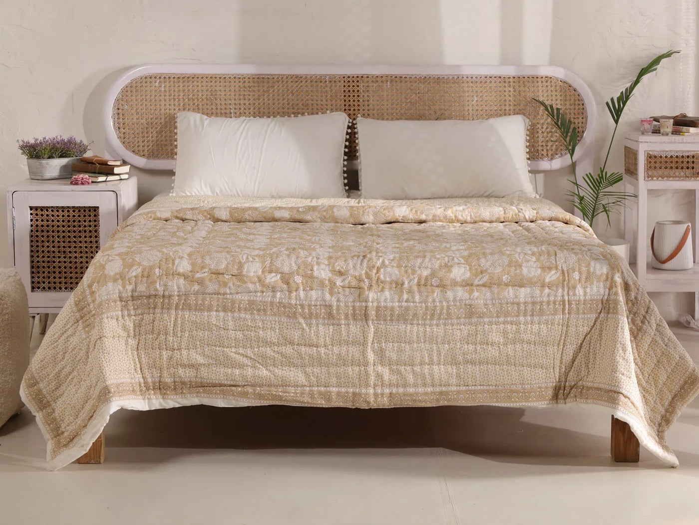 All Season Jaipuri Quilt | 100% Pure Cotton | Block Print | Double Bed - Narmada - 90 x 108 inch