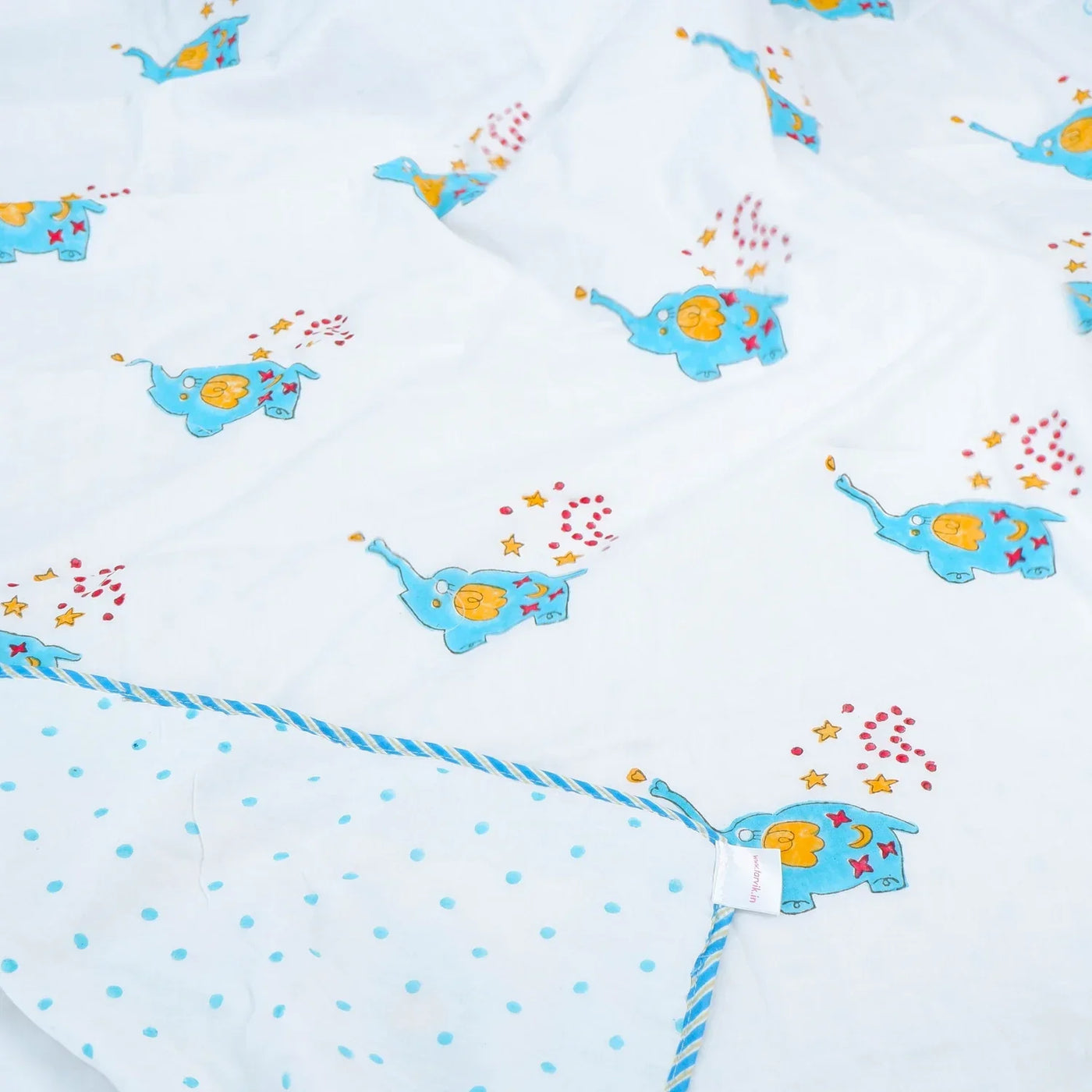 Blue Elephant Printed Kids Cotton Dohar - Single Bed Size (40x60 Inches)