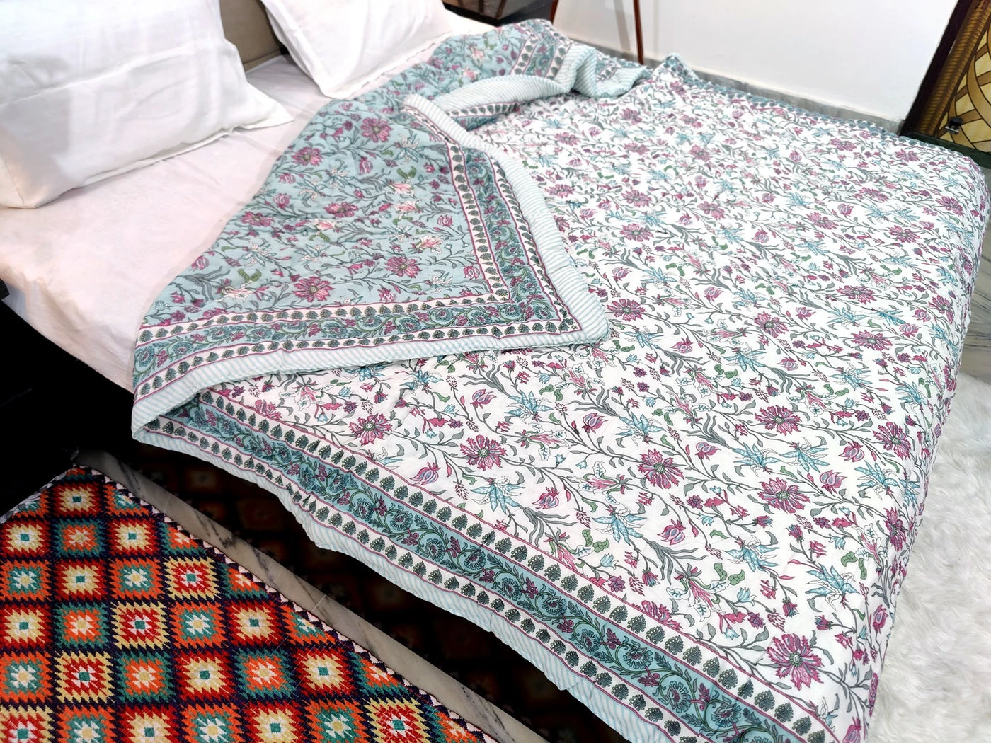 Jaipuri Quilts | 100% Pure Cotton | Block Print | Double Bed - Mehwish (Reversible)