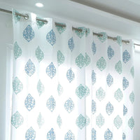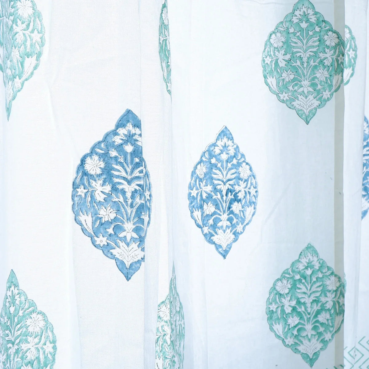 Hand Block Print Cotton Daylight Curtain Set - Mint Floral Jaal (Size - 7 feet)