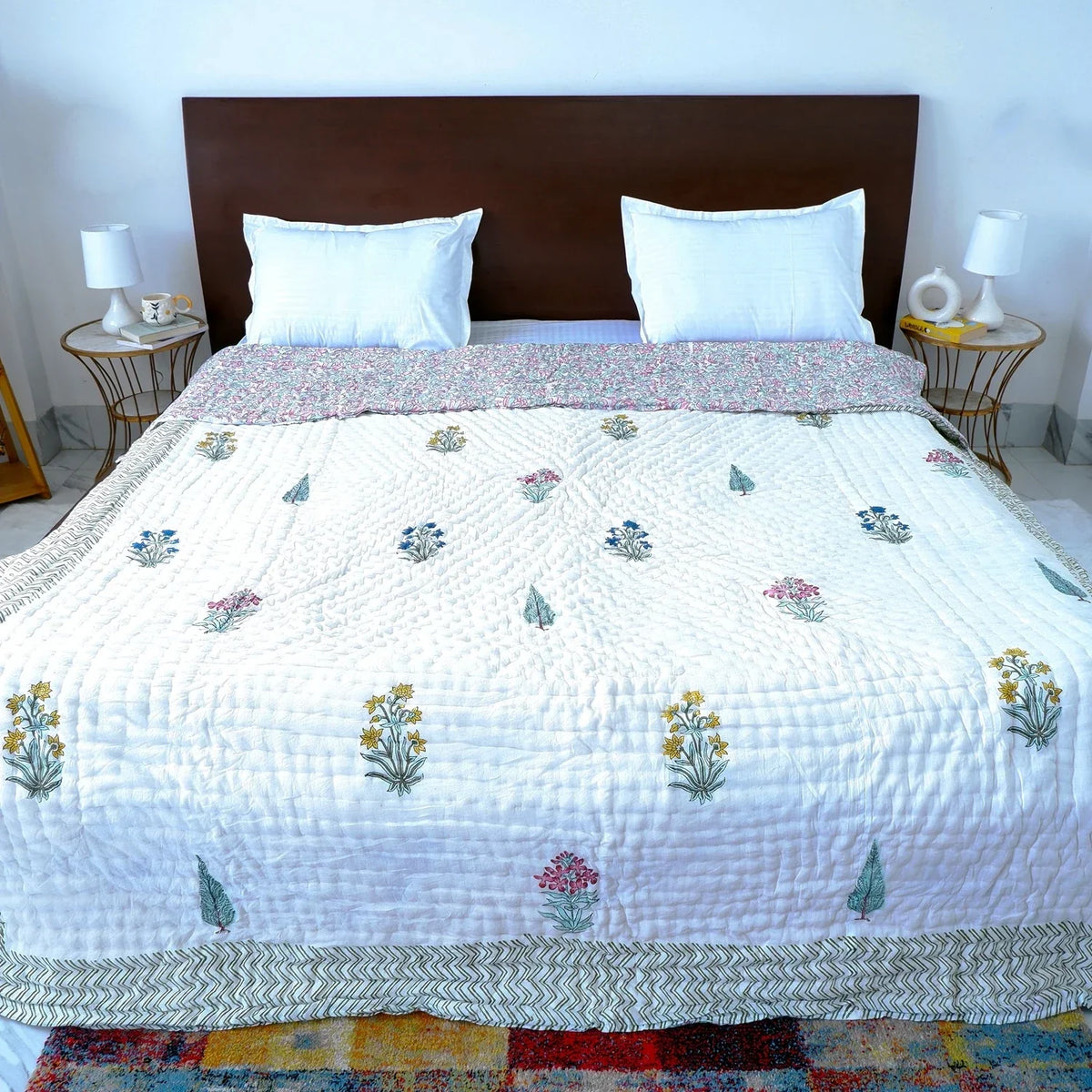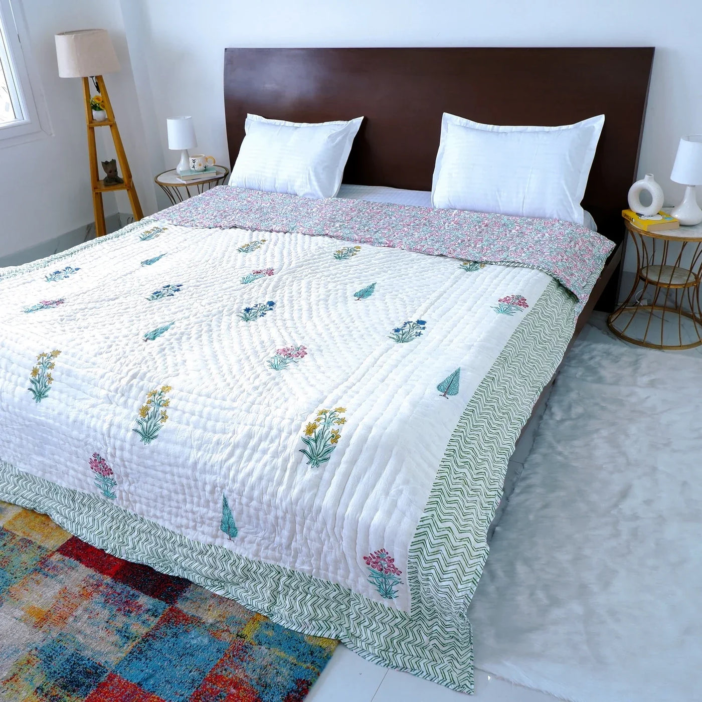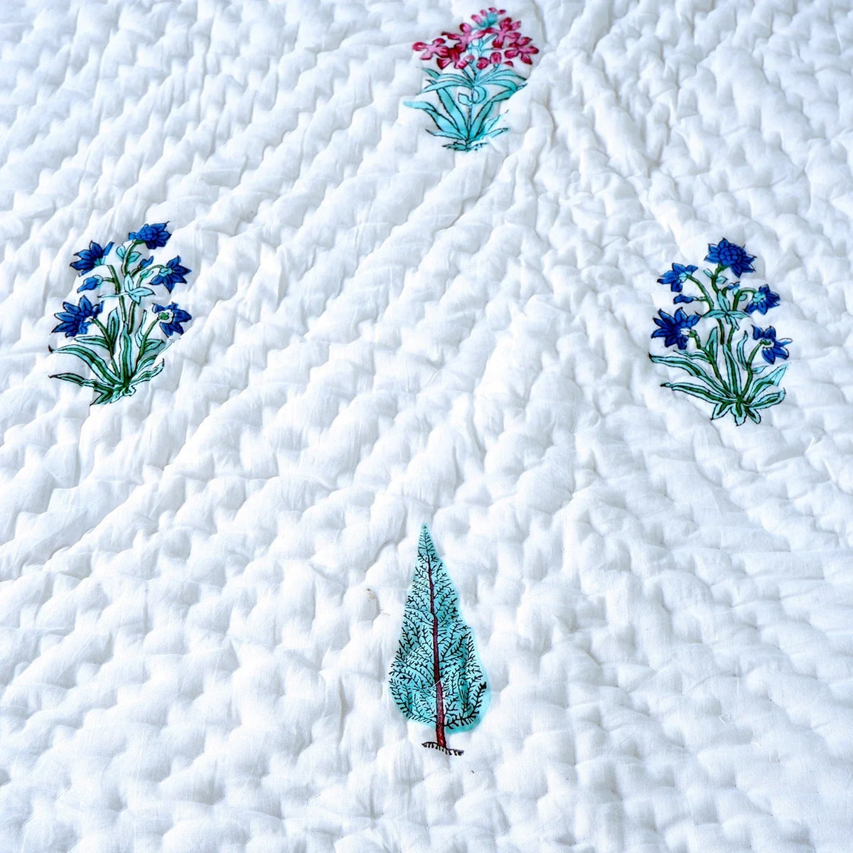 Hand Block Printed Jaipuri Cotton Quilt - Gulmohar Jaal (90X108 Inches)